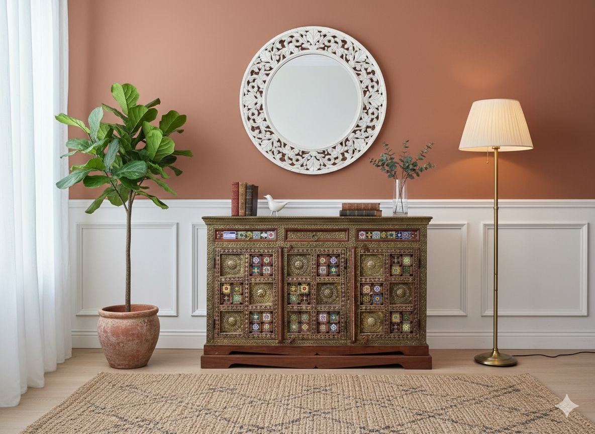 Royal brass and fitted side board with 3 door and 3 drawer