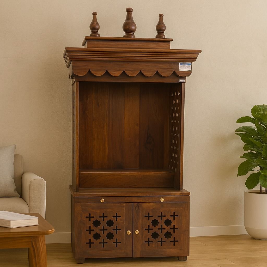 Beautifully handcrafted with intricate detailing and a grand design, this wooden temple brings a luxurious and devotional aura to your home. Perfect for villas and large interiors, it showcases exceptional craftsmanship and timeless appeal.